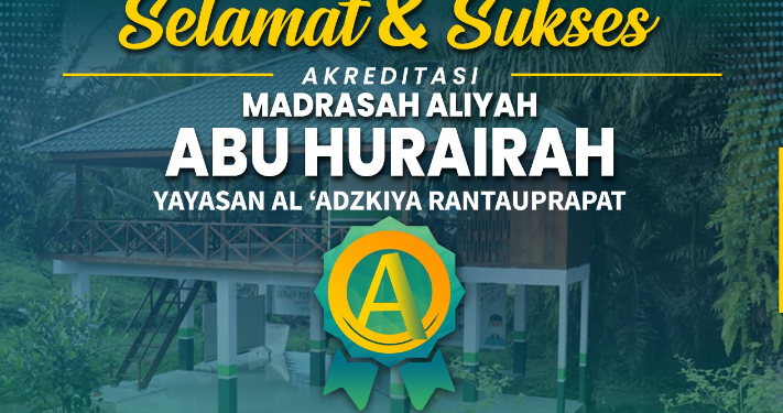 Alhamdulillah ! Madrasah Aliyah Abu Hurairah Rantauprapat berhasil meraih akreditasi A dari Badan Akreditasi Nasional Perguruan Tinggi. Ketua Yayasan Al’Adzkiya Rantauprapat, Asrar Aspia Manurung, M.Pd. Menyampaikan hasil Asesment lapangan akreditasi madrasah, MA Abu Hurairah meraih poin 92 sehingga mendapatkan akreditasi A.… Madrasah Aliyah (MA) Abu Hurairah Terakreditasi A